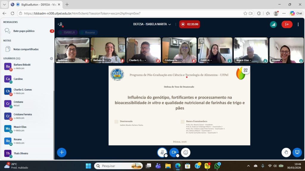 O primeiro tratou sobre a fortificação da farinha de trigo com sulfato e fumarato ferroso em que a pesquisadora discutiu sobre os critérios de fortificação com base nas legislações vigentes analisou a bioacessibilidade dos minerais e discutiu o impacto disso a nível mundial.